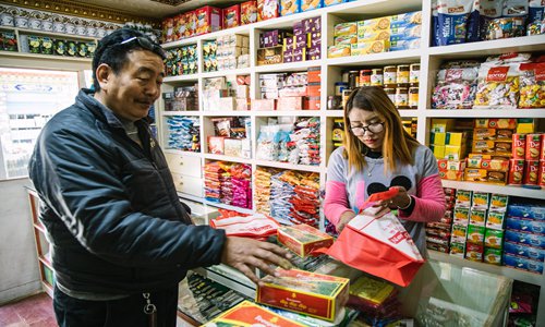 Ganga Sherpa, a Nepalese who’s selling her country’s goods in Gyirong Town, told the Global Times that she came to meet her family in the town in 2014 for the first time. She decided to stay and opened a store.