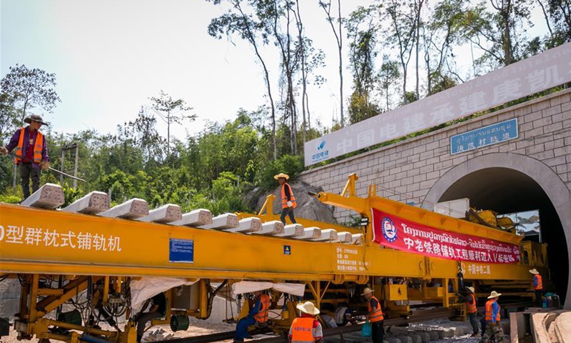 Lei Chao, secretary of the Communist Party of China (CPC) working committee at the China Railway No. 2 Engineering Group (CREC-2) railing base, which undertakes the track laying of the China-Laos railway, told reporters that amid the COVID-19 pandemic, the CREC-2 has been actively planned the work and mobilized over 700 Laotians and 200 Chinese engineers and workers who cooperated closely and effectively, raising the railing speed from two km per three days at the beginning to 1.5 km daily now.